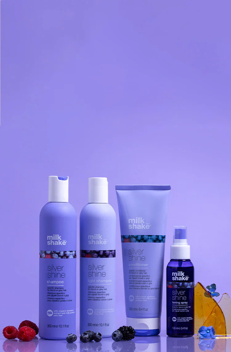 The icy blond and silver shine collections help keep blond and silver hair